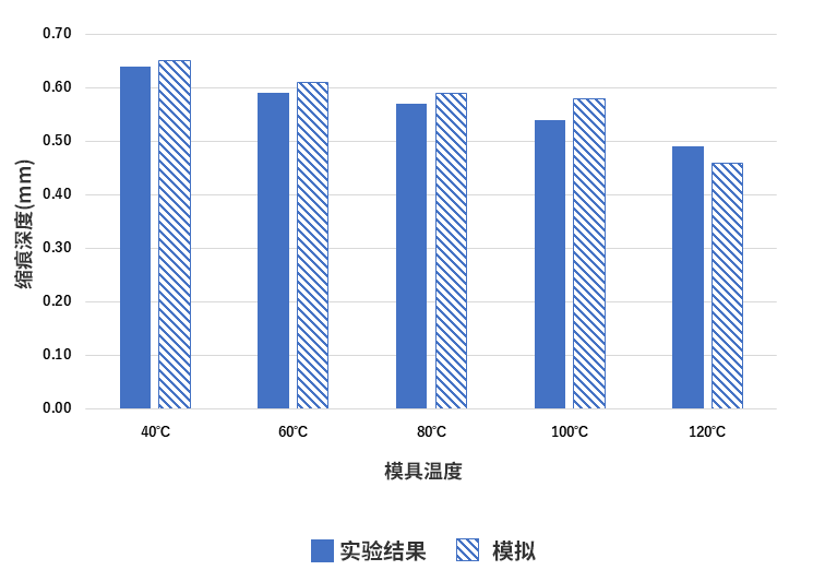 制品表面的缩痕量比较(确认模具温度依存性)
